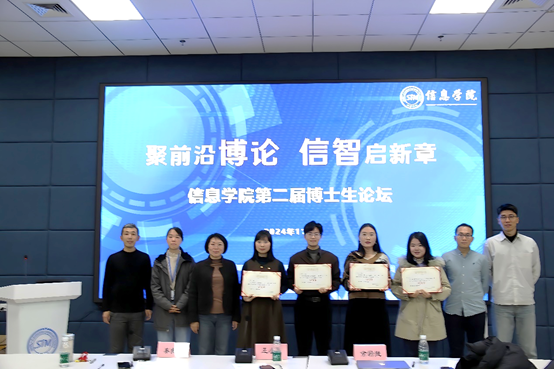 在第四场分论坛的尾声,由黄色电影 副院长倪耀东及三位评委老师共同为本届博士生论坛四位获“优秀奖”的博士生颁发荣誉证书,鼓励他们在学术探索的道路上锲而不舍、持续探索。本次论坛在热烈而浓厚的学术氛围中圆满落幕。