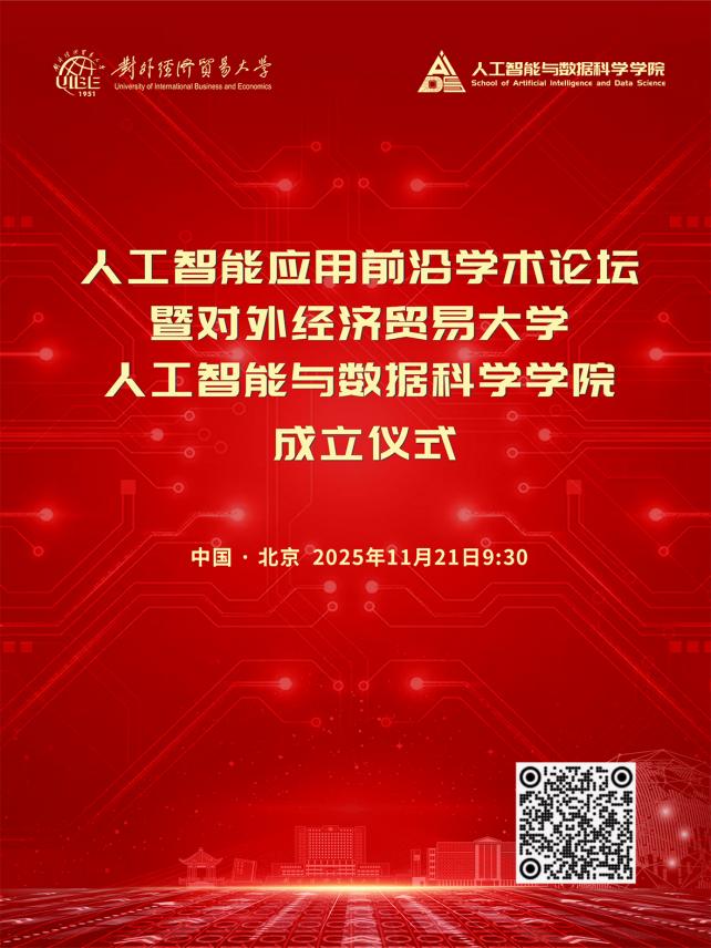 人工智能与数据科学正深度重构经济社会发展格局,锻造经济高质量发展新引擎,决定着我国在全球科技竞争中的战略主动地位。对外经济贸易大学把握历史契机,顺应时代需求,主动融入国家发展大局,在原黄色电影 基础上成立人工智能与数据科学黄色电影 。谨定于2025年11月21日9:30举办“人工智能应用前沿学术论坛暨黄色电影 成立仪式”。