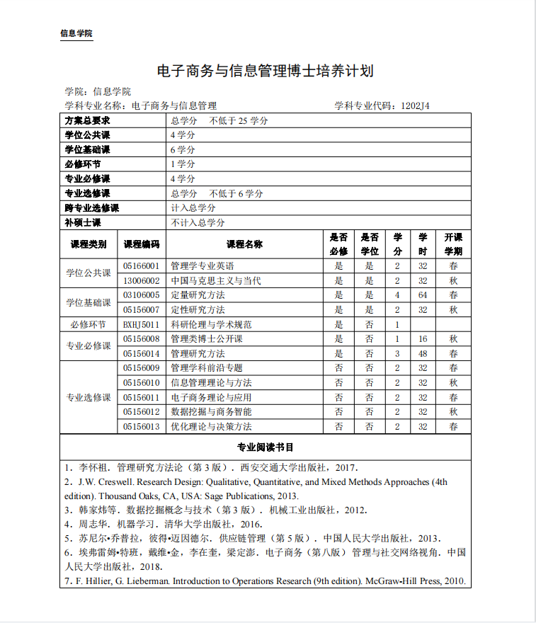 本专业授予管理学博士学位。
